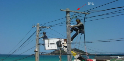 (화면: 작업자는 전보대의 작업발판을 딛고 작업을 하고 있는 상황)